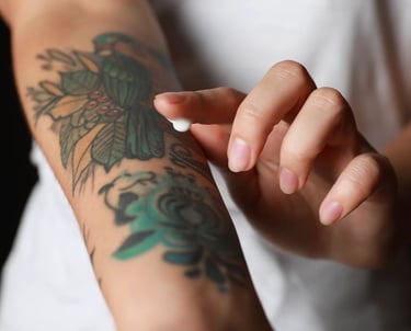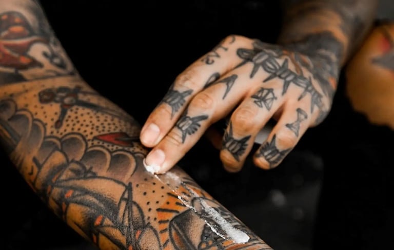 The wrap should be taken off no more than 2 hours after your session. Before bed, wash the area using room temperature water and fragrance free soap. Depending on the tattoo, you may be instructed to rewrap your tattoo in plastic wrap before going to bed. If so, wrap the area right before bed and not too tight, and remove shortly after waking in the morning. When the wrap is off, proceed to moisturize the tattoo. Continually apply a thin layer of Aquaphor multiple times a day to keep your tattoo hydrated, which will decrease the itchiness and peeling. This will allow the ink and details to heal underneath the skin. After 5-10 days of Aquaphor, you can switch out to fragrance free lotion to continue moisturizing.